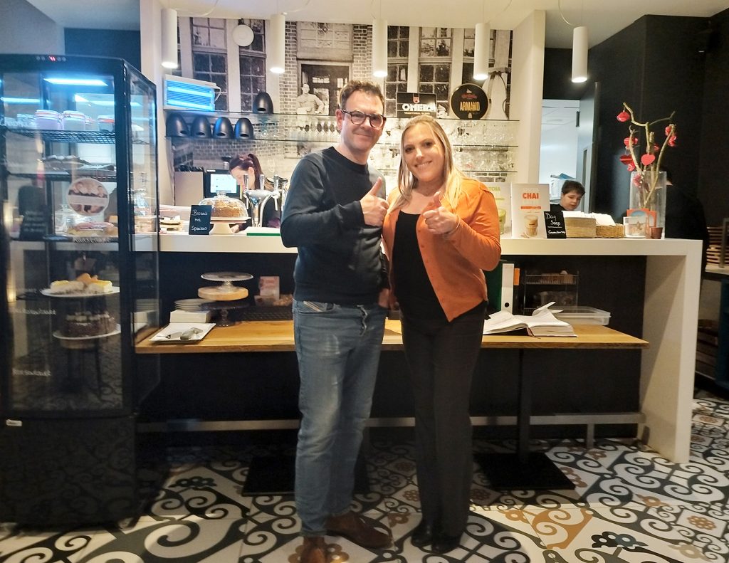 Ik heb ook mijn handen uit de mouwen mogen steken, zowel in de zaal als in de keuken. Toen Kelly mij aan haar medewerkers voorstelde, kreeg ik meteen een volle plaat aangereikt: “Deze kun je al naar de tafel in de hoek brengen.”